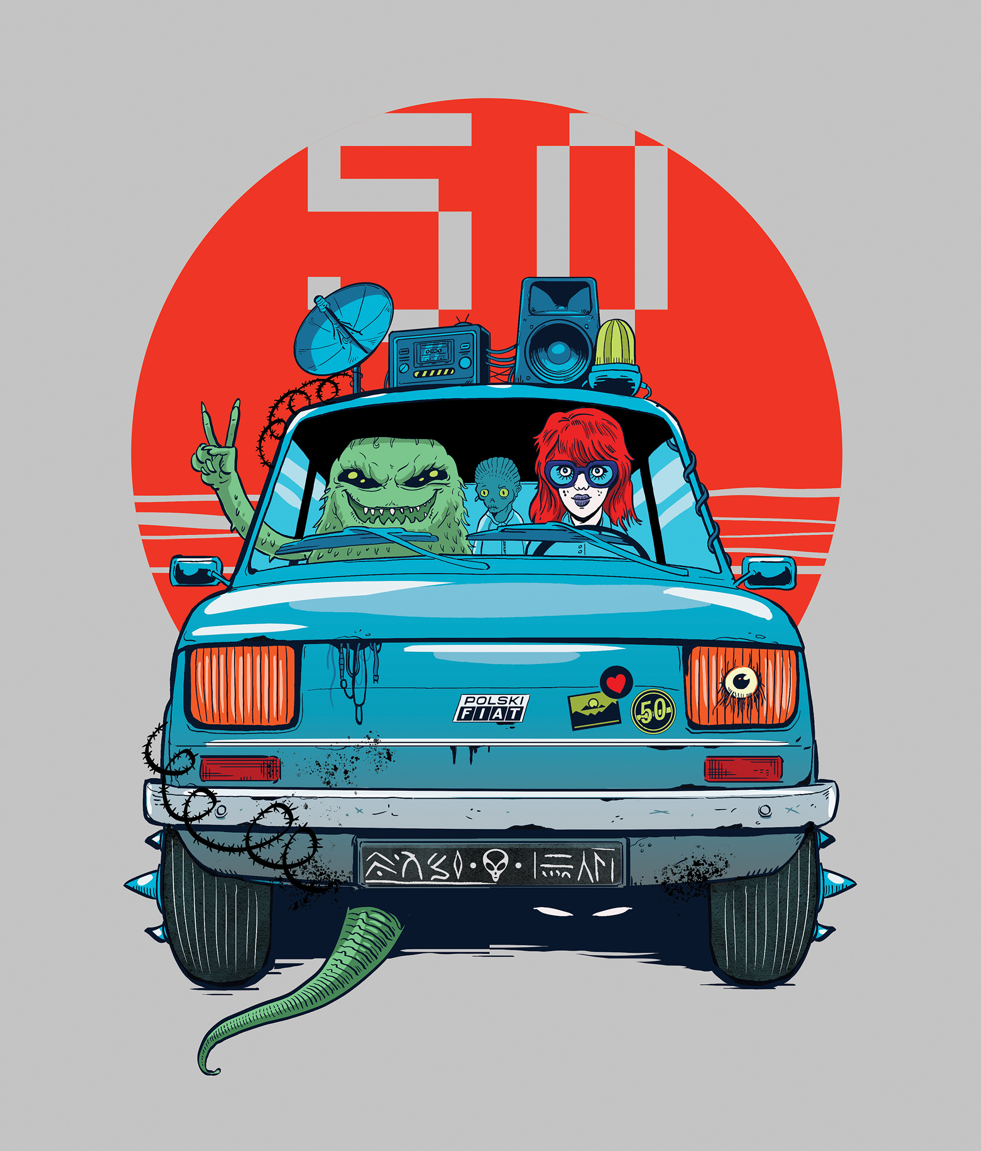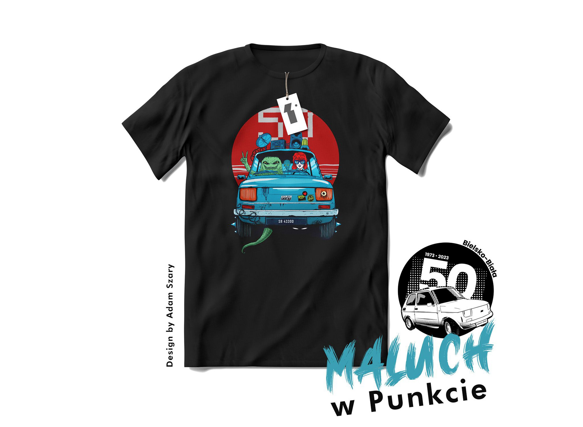 A T-Shirt design created to celebrate the 50th anniversary of the Fiat 126p (Maluch), commissioned for the city of Bielsko-Biała